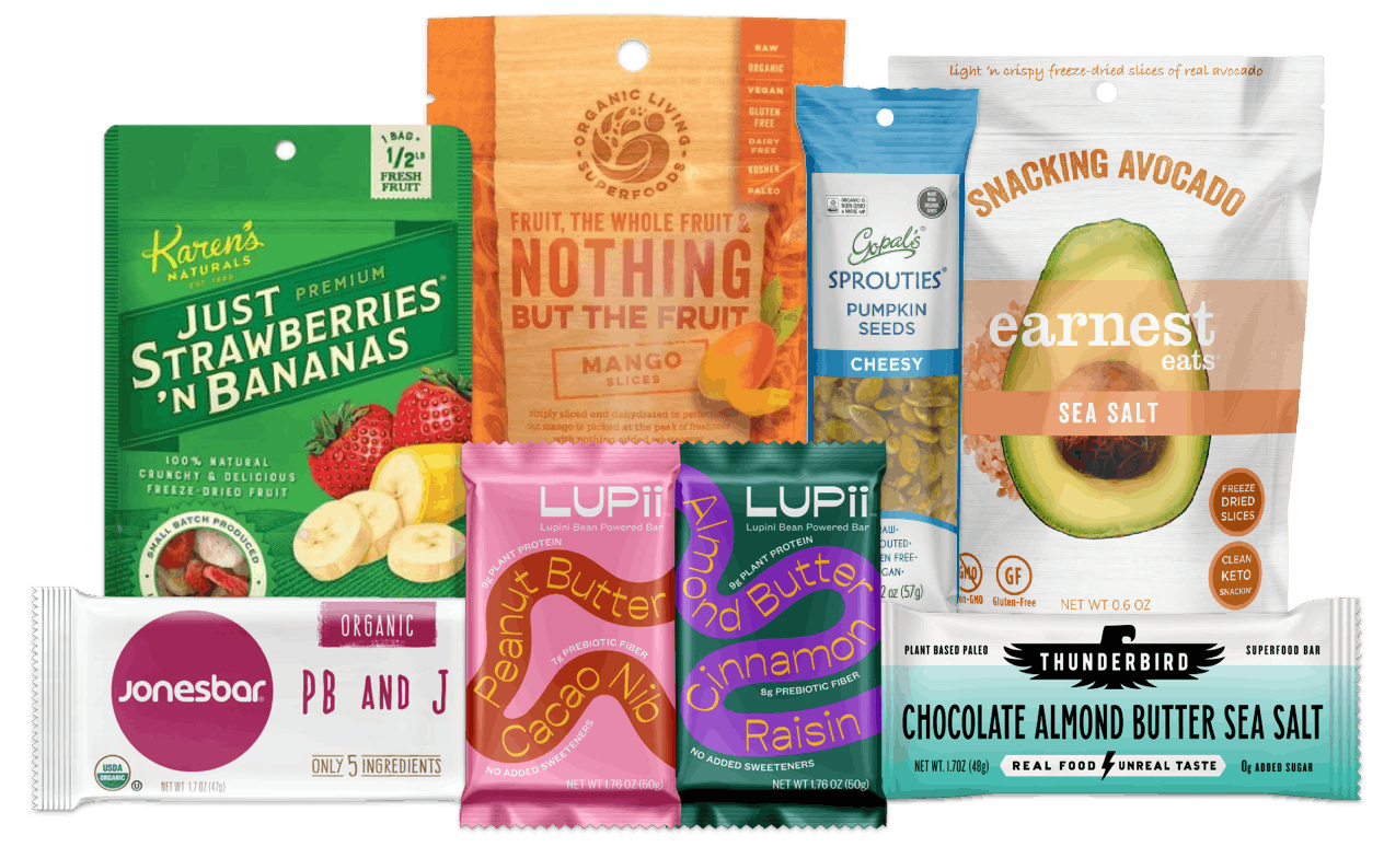 A mix of about 10 of our most popular snacks from our 90+ total options to give your team a foundation of everyday healthy snacking. We’ll replace anything you don’t love.